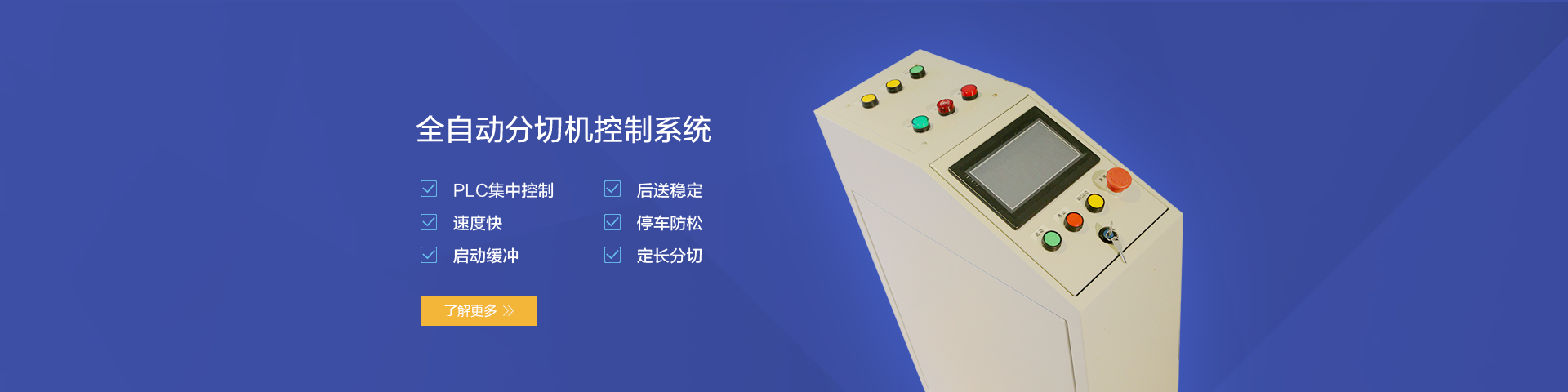 PLC集中控制,速度快啟動(dòng)緩沖,后送穩(wěn)定停車(chē)防松,定長(zhǎng)分切